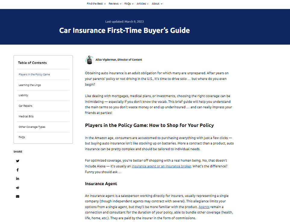 AutoInsurance.com is one of the 15 owned-and-operated sites run by Centerfield Media, a digital customer acquisition company. I currently work at Centerfield and manage production projects on AutoInsurance.com.